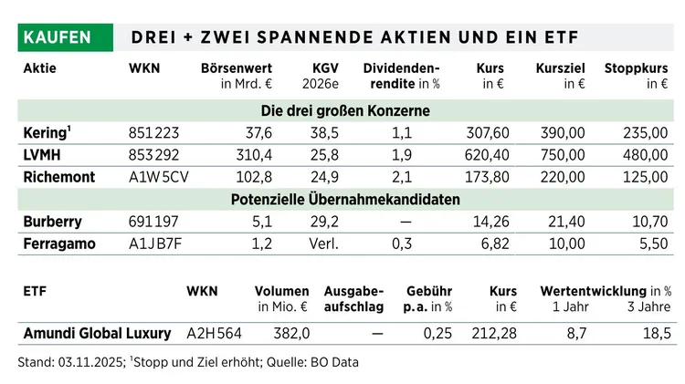 ► LVMH UND CO Die Modewelt findet Gefallen an den neuen Kreationen und die Börsenwelt an den wieder steigenden Umsatz- und Gewinnzahlen. Wir haben fünf Aktien der Branche unter die Lupe genommen