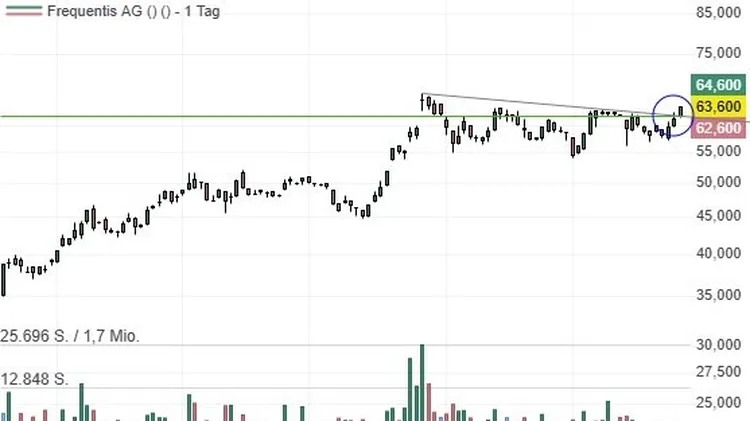 Frequentis bricht über die Trend Continuation Line aus – neues Long-Signal. Verteidigungsausgaben, Remote-Tower und Drohnen sind Wachstumstreiber!