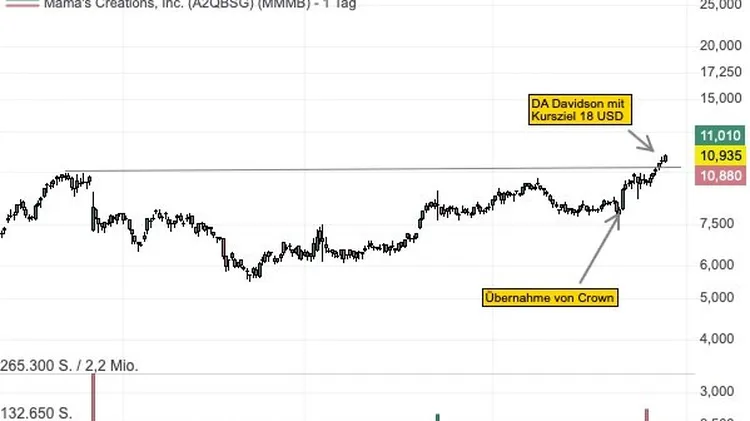 Mama's Creations bekommt ein Kursziel von 18 USD, was einem Potenzial von mehr als 50 % entspricht!