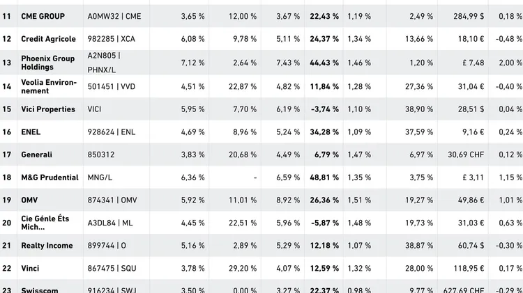 Top 01-30 Dividendenaktien Europa und USA