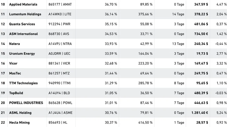Top 01-30 Dekadenhoch-Aktien