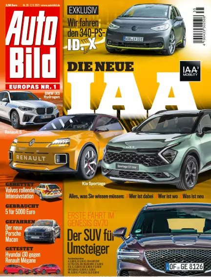 Jeden Donnerstag in AUTO BILD: mal hart am Blech mit Test- und Technikbeiträgen, mal über die Stoßstangen hinaus mit umfangreichen Servicethemen. Große Neu- und Gebrauchtwagenvergleiche, Werkstatt- und Reifentests, aktuelle Nachrichten und Lesertipps, aber auch Reiseinfos und Versicherungsthemen sind wichtige Teile des redaktionellen Konzepts.