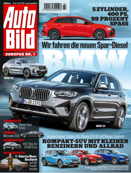 Jeden Donnerstag in AUTO BILD: mal hart am Blech mit Test- und Technikbeiträgen, mal über die Stoßstangen hinaus mit umfangreichen Servicethemen. Große Neu- und Gebrauchtwagenvergleiche, Werkstatt- und Reifentests, aktuelle Nachrichten und Lesertipps, aber auch Reiseinfos und Versicherungsthemen sind wichtige Teile des redaktionellen Konzepts.