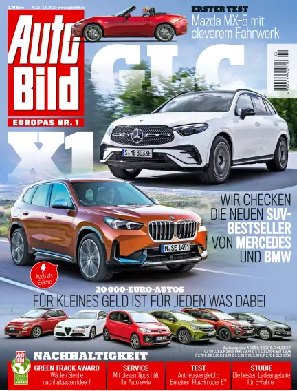 Jeden Donnerstag in AUTO BILD: mal hart am Blech mit Test- und Technikbeiträgen, mal über die Stoßstangen hinaus mit umfangreichen Servicethemen. Große Neu- und Gebrauchtwagenvergleiche, Werkstatt- und Reifentests, aktuelle Nachrichten und Lesertipps, aber auch Reiseinfos und Versicherungsthemen sind wichtige Teile des redaktionellen Konzepts.