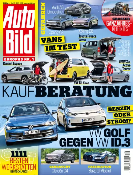 Jeden Donnerstag in AUTO BILD: mal hart am Blech mit Test- und Technikbeiträgen, mal über die Stoßstangen hinaus mit umfangreichen Servicethemen. Große Neu- und Gebrauchtwagenvergleiche, Werkstatt- und Reifentests, aktuelle Nachrichten und Lesertipps, aber auch Reiseinfos und Versicherungsthemen sind wichtige Teile des redaktionellen Konzepts.