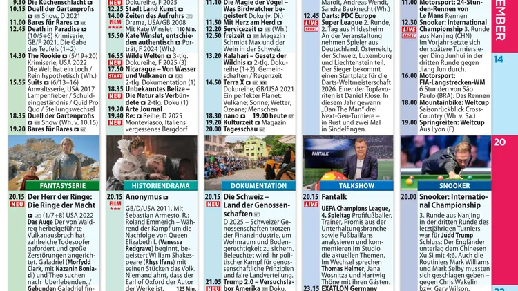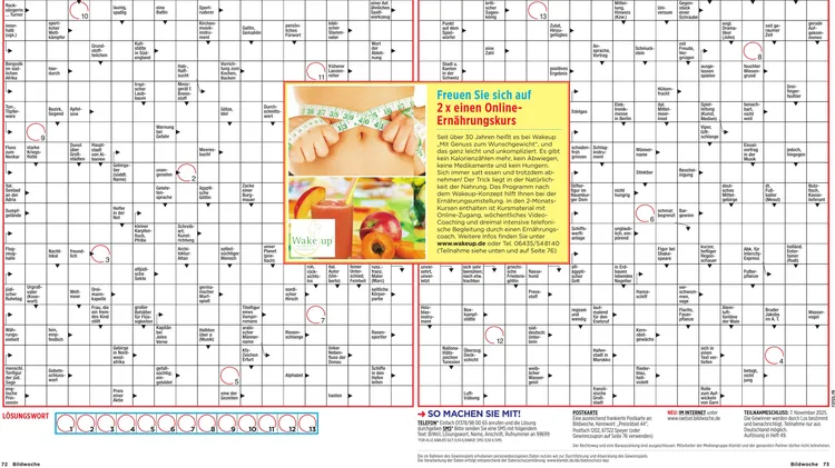 3 in 1 ! TV, Rätsel & Freizeit „Mehr Rat – Mehr Tat – Mehr Tipps für jeden Tag“ Dieser Claim steht für das neue Konzept der Bild Woche. Der Mantel garantiert zum einen hohen Nutzwert durch ausführliche Ratgeber mit Tipps und Informationen zu allen Bereichen des täglichen Lebens, zum anderen mitreißende Unterhaltung durch "Geschichten, die das Leben schreibt“, die auch immer mit einem Experten-Rat verbunden werden. Im TV-Programm erweitert die Bild Woche ihre redaktionelle Leistung. Zusätzlich zum liebgewonnenen Programm präsentiert die BildWoche an den sieben Tagen über 120 Tipps in einer besonderen Leiste. Doch diese sind keine klassischen Sendungshinweise, sondern spannende Hintergrund-Informationen zu den Stars, fundierte Service-Tipps als Ergänzung oder kleine Spaß-Elemente für die TV-Pause. Damit hat BildWoche einen einzigartigen USP in Mantel und Programm im Markt der wöchentlichen Programmzeitschriften.