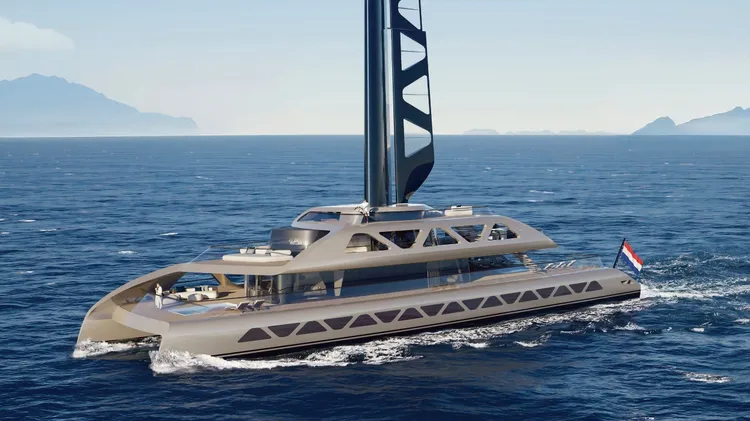 Royal Huisman präsentiert mit „Aera“ einen 50-Meter-Kat mit automatisiertem Flügelsegel. Das Konzept kombiniert Wind- und Wasserkraft, Wasserstoff und Hydrogeneration für Yachting mit minimalem ökologischen Fußabdruck.