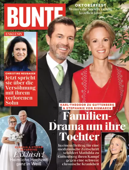 Neues aus der Welt der Reichen und Schönen, der Stars und Sternchen, der Royals und des Adels liest man jeden Mittwoch in der BUNTEN. Auch aktuelle Trends aus den Bereichen Beauty, Mode, Lifestyle und Gesundheit werden aufgegriffen. Seit mehr als 60 Jahren steht die BUNTE für Society-Berichterstattung, die sich durch exklusive Interviews, einzigartige Promi-Schnappschüsse und überraschende Enthüllungen auszeichnet.