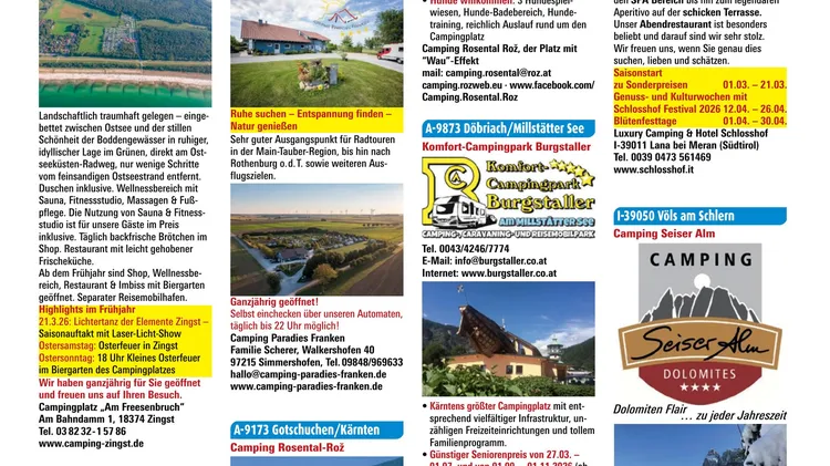 CARAVANING - Europas großes Camping-Magazin CARAVANING ist Europas großes Camping-Magazin. Seit fast 60 Jahren erfahren Camper in CARAVANING alles, was sie zum Thema Wohnwagentechnik und –urlaub wissen müssen. Zwei Schwerpunkte prägen jede Ausgabe: Zum einen bringt CARAVANING stets aktuelle und häufig exklusive Tests, Vorstellungen und Marktübersichten von Caravans, Zugwagen sowie Camping- und Freizeit-Zubehör. Zum anderen nimmt das Themenfeld "Camping" breiten Raum ein, wobei alle Reise- und Freizeit-Reportagen ganz speziell auf die Interessen der Camper zugeschnitten sind und der Anwender im Fokus steht. Ein großer Nachrichtenteil, Experten-Tipps sowie das Campingplatz-Archiv zum Sammeln runden die Heftmischung ab.