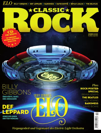 Jeff Lynne's ELO - Vergangenheit und Gegenwart des Electric Light Orchestra Billy Gibbons - Über Bärte, Blues und Anbaggern Def Leppard - Genießen ihren dritten Frühling Außerdem: Rock-Poster-Special, Bryan Adams, The Beatles, Neil Young, Baroness, David Bowie u.v.m.