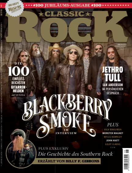 # 100 JUBILÄUMSAUSGABE #100 ► Titelstory: Blackberry Smoke im Interview ► Plus: Die Geschichte des Southern Rock - erzählt von Billy F. Gibbons ► Die 100 einflussreichsten Gitarrenhelden auf 34 Seiten ► Jethro Tull - Ian Anderson im privaten Gespräch ► Außerdem: Rick Wakeman, Monster Magnet, Myles Kennedy, John Hiatt, Gilby Clarke, Otis Redding u.v.m.!