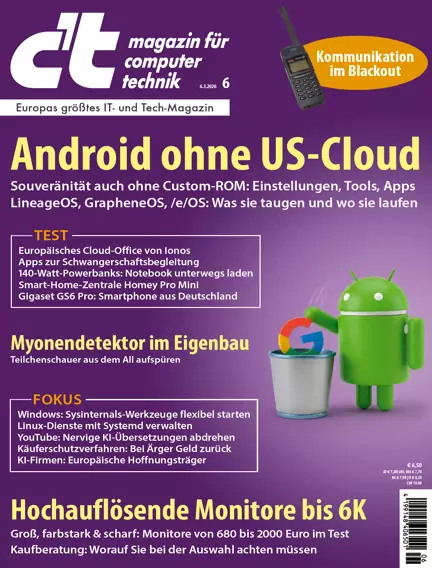 Alle zwei Wochen präsentiert Ihnen Deutschlands größte IT-Redaktion aktuelle Tipps, kritische Berichte und tiefgehende Reportagen. Unabhängiger Journalismus ist bei c't das A und O - das wissen unsere Leser zu schätzen. Klar, Technik und Innovation – das ist unsere gemeinsame Leidenschaft! c't begleitet Sie als verlässliche Quelle durch die Welt der Technologie, heute wie morgen.