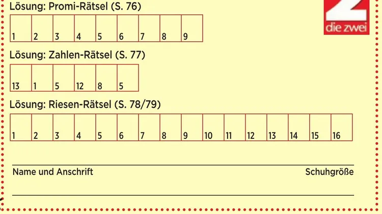 Die 2 – der Name ist Programm, denn die 2 steht für die in Deutschland einmalige Kombination von Stars und TV-Programm. Die 2 berichtet von den Lieblingen des Fernsehens, den Promis aus Show-Biz und Gesellschaft und den royalen Mitgliedern weltweit. Die 2 hat das aktuellste Programm aller TV Titel Deutschlands und präsentiert dies für über 40 Sender. Abgerundet wird dieses Paket an Informationen mit Service-Elementen zu Gesundheit, Reise, Beauty und Food.