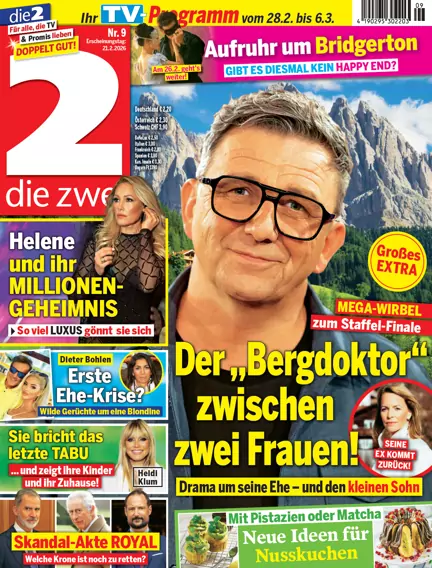 Die 2 – der Name ist Programm, denn die 2 steht für die in Deutschland einmalige Kombination von Stars und TV-Programm. Die 2 berichtet von den Lieblingen des Fernsehens, den Promis aus Show-Biz und Gesellschaft und den royalen Mitgliedern weltweit. Die 2 hat das aktuellste Programm aller TV Titel Deutschlands und präsentiert dies für über 40 Sender. Abgerundet wird dieses Paket an Informationen mit Service-Elementen zu Gesundheit, Reise, Beauty und Food.