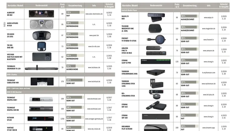 AKTUELL KOMPAKT 06 | Erlaubnis für Streamer | Satelliten-Netzwerk für Europa | Doppelter FTTH-Glasfaseranschluss | SES und HD+ rücken zusammen | „DEFA TV“ bei Waipu.tv | Sky-Hacking | Basketball-Bundesliga 07 | OLED-Technologie bald preiswerter | Transponderwechsel auf 28,2 Grad Ost | Format für Kinder | HBO Max startet in weiteren Ländern | Amazon setzt auf Pay-Per-View | Sky UK baut um die 900 Arbeitsplätze ab | Disney+ zieht die Preise an 08 | Finanzlage angespannt | Neue Visionen startet Streamingdienst | Scharfe Kritik an ARD-Radio- plänen | Laser-Kommunikation | Sendegenehmigung | Champions League bei Prime Video 09 | Sky-Übernahme nimmt erste Hürde | DAB+ Ausbau | mobiler DAB+-Sender | BVN wird eingestellt | Kampf um die Zukunft von UKW | Investitionen in Bewegtbild-Inhalte | Neue Sender bei OTT-TV AKTUELL THEMA 10 | Freies MagentaTV-Angebot: Das sind die Highlights bei Freemium 12 | SD-Aus: So empfangen Sie die ZDF-Sender weiterhin über Satellit 16 | Canal+ setzt auf eine App für alle Plattformen: Vorstellung der Streaming-App 20 |Neues waipu.tv-Paket für noch günstigeren Einstieg startet PRODUKTE KAUFBERATUNG 19 | Neuer Waipu.tv 4K-Stick im Test 22 | 50 Zoll QLED TV von Sharp mit TiVo OS auf dem Prüfstand 26 | Sonys neue Mittelklasse Bravia 5 im Expertencheck 28 | DAB-Radio mit Warnfunktion: Kenwood CR-ST85DAB im Test 30 | Günstiger Alleskönner oder Flop? Das taugt das AudioAffairs-Kombiradio 32 | So leistungsfähig ist die neue Fritzbox 4690 in der Praxis 36 | Ambilight selbst gemacht: Dynamische TV-Beleuchtung von Wiz in der Praxis 40 | Netzwerksignale gut verteilt: Devolo Gigabit Ethernet Switch 16 Port im Test FREQUENZEN ÜBERSICHT 42 | Astra 1KR/1L/1M/1N – 19,2 Grad Ost 49 | Eutelsat Hot Bird 13B/13C/13E – 13 Grad Ost 54 | Türksat 3A/4A – 42 Grad Ost 57 Astra 2 – 28,2 Grad Ost 57 | Astra 2 – 28,2 Grad Ost SERVICE PRAXIS 61 | MPEG-2, MPEG-4 oder HEVC – So arbeiten die Komprimierungsstandards 64 | Favoritenlisten am TV anlegen: Workshop zur besseren Übersichtlichkeit der Senderliste 66 | m3u8-Listen: eigene Streaminglisten zusammenstellen 72 | Sat-Empfang optimieren: Unicable statt klassischer Verteilung DIGITAL TV EMPFANG 76 | Alternativen zu MTV- Programmen: Musiksender via Satellit und IPTV vorgestellt 80 | US-TV via Streaming: Diese Sender aus den USA sind nutzbar 84 | Mittelwellensender aufbauen und einmessen 86 | HD+ nun auch in Spanien: Erste Details zum Start der neuen Plattform STANDARDS 03 | Editorial 04 | Inhalt 88 | Fachhändlerverzeichnis 90 | Glossar 94 | Testübersicht 98 | Vorschau/Impressum