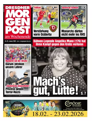 Die Dresdner Morgenpost ist eine der führenden Kaufzeitungen in den neuen Bundesländern. Ob beim Aufdecken von Politskandalen, dem Engagement für den regionalen Sport oder im Einsatz für günstige Einkaufsmöglichkeiten: Das Erfolgsrezept der Dresdner Morgenpost ist ehrlicher, engagierter Journalismus, der die Leser ernst nimmt, unterhält und sich für ihre Interessen einsetzt. Ein Erfolgsrezept, das sich auch in Zahlen ausdrückt: In der Landeshauptstadt Dresden ist sie seit Jahren Marktführerin in diesem Segment. Für das zur Morgenpost gehörende Newsportal TAG24 werden alle aktuellen News aus der Redaktion digital optimiert und so auch online und mobil verfügbar.
