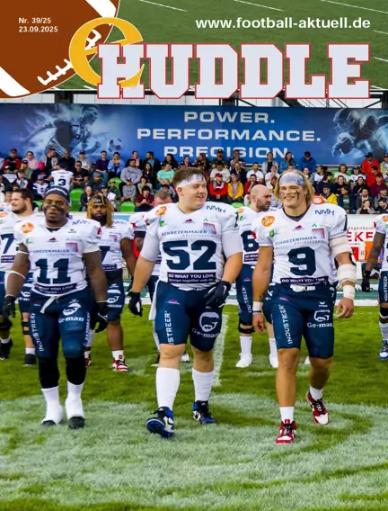 GFL: Overtime Wahnsinn in München Ben Rashid auf Quarterback-Jagd GFL 2: Büttner von Langenfeld nach Krefeld Regionalligen: Augsburg setzt sich in Bad Homburg durch News: Stuttgart wieder in der dritten Liga Österreich wieder U19-Europameister ELF: Head Coach wirft hin und enthüllt interne Probleme Karriere vorbei: Mit 23 ist Schluss NFL: Krimi in Tampa Bay Zwei Minuten, drei Fumbles Houston, wir haben ein Problem Richtige falsche Entscheidungen? Miamis Fehlstart komplett Jakob Johnson fester Teil der Texans College: Indiana und Texas Tech spielen sich nach vorn Abwehrreihen stehlen Quarterbacks die Show Syracuse verblüfft Clemson College Football in London Der eHUDDLE berichtet wöchentlich über alle Ereignisse im American Football. Inhaltliche Schwerpunkte sind die Berichterstattung über den Football in Deutschland sowie über die NFL und den College Football in den USA.