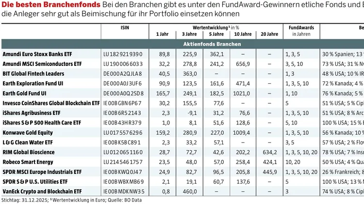 Mit den besten Branchenfonds können Anleger die Performance ihres Portfolios nochmals verbessern oder es breiter aufstellen als bisher