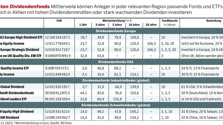 Anleger können mit den besten Dividendenfonds laufend hohe Ausschüttungen vereinnahmen und zugleich hohe Kursgewinne erzielen