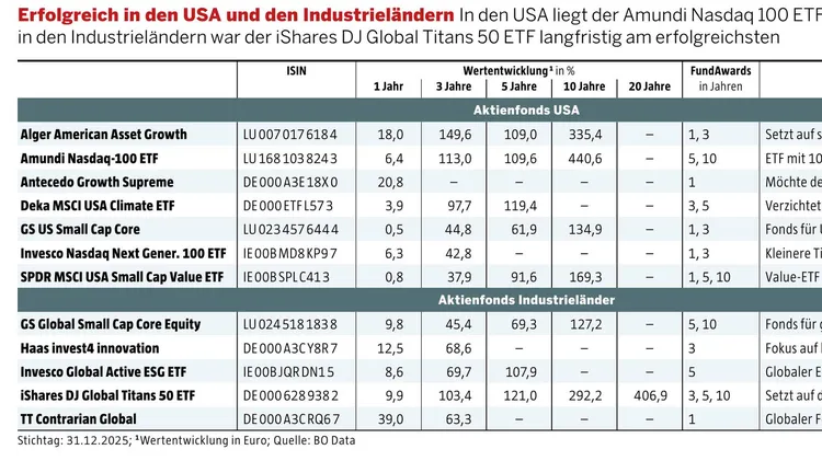 Mit den besten US-Fonds sind Anleger im wichtigsten Aktienmarkt der Welt engagiert, mit den besten Fonds für die Industrieländer auch in Europa oder Japan