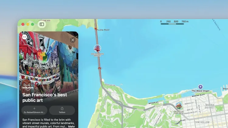 Entdecken Sie zahlreiche Optionen in Apple Karten, um Ihren nächsten Urlaub zu planen. Von Sehenswürdigkeiten über Hotels bis Routen – mit Apple Karten haben Sie alles im Blick.