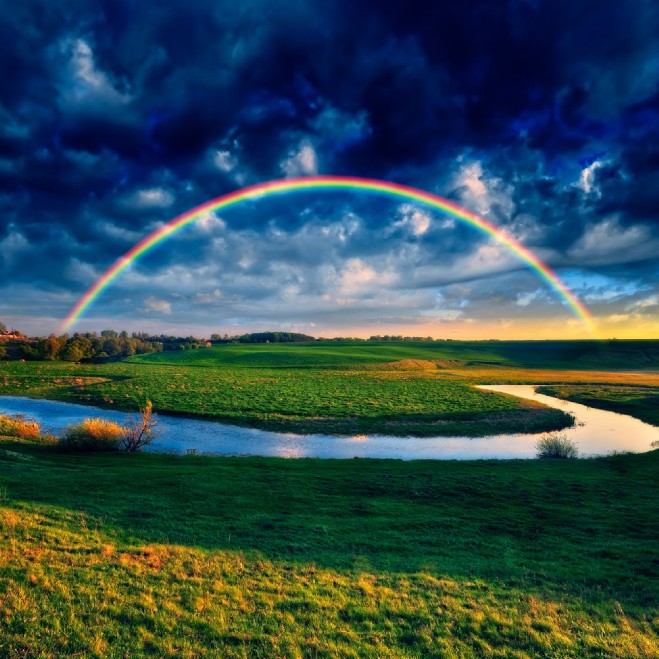 Die Hoffnung ist der Regenbogen über den herabstürzenden Bach