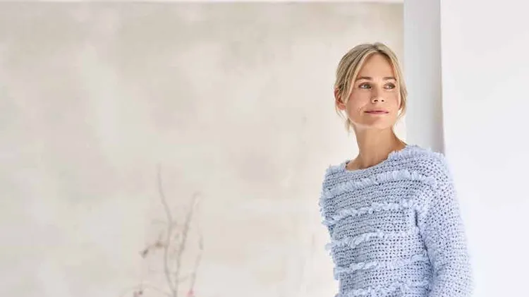 Erinnerst du dich an das ausgefallene Kissen aus unserer letzten Ausgabe? Diese Anleitung greift dieses besondere Muster erneut auf und zeigt, wie daraus ein stilvoller Pullover entsteht.