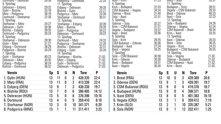 Frauen-Handball: Champions League – 11. Spieltag