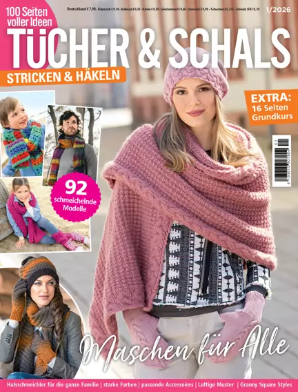 Accessoires bleiben ein beliebtes Trendthema. Dabei sind dekorative Tücher, flotte Schals, lässige Loops und Co. die absoluten Favoriten. Wir haben die 92 schönsten Maschen-Modelle für euch zusammengestellt. Lasst euch inspirieren und nadelt los! So könnt ihr für jeden Hals und um jede Schulter den passenden Blickfang für eure Outfits anfertigen. Für jede Jahreszeit ist etwas dabei: Aus Feinem mit festlichem Touch, luftige Hüllen für Frühling und Sommer und Kuscheliges für die kalten Tage könnt ihr wählen. Viel Spaß beim Blättern durch 100 Seiten voller bunter Ideen und natürlich beim Nacharbeiten.