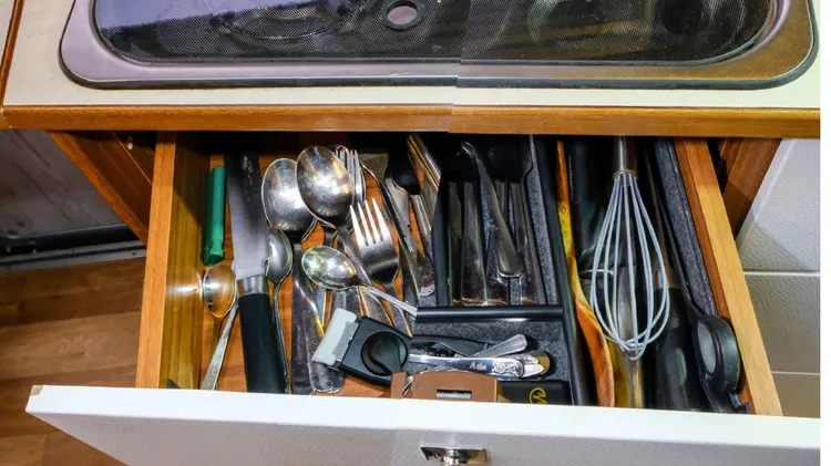 Kleinteile aus einem WILDEN DURCHEINANDER herausklauben zu müssen ist nervig. Wenn die Wohnmobilküche keinen Besteckkasten aufweist – kein Problem. Basteln Sie doch einfach einen.