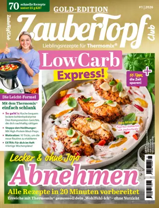 Wer einen Thermomix® hat, kommt an mein ZauberTopf nicht vorbei! Für Fans des einzigartigen Küchenhelfers ist mein ZauberTopf die erste Adresse, wenn es um mehr Vielfalt im Mix-Alltag geht. Das Team von mein ZauberTopf widmet die Reihe GOLD-EDITION den beliebtesten Themen rund um Thermomix® – darunter „All-in-One“, „One-Pot“, „Schnelle Rezepte“, „Geschenke aus dem Thermomix®“, „Brot backen“ oder „Low Carb“. Enthalten sind je Ausgabe wertvolle Tipps und Tricks für noch mehr Mix-Spaß. (mein ZauberTopf ist eine Publikation aus dem Hause falkemedia und steht in keinerlei Verbindung zu den Unternehmen der Vorwerk-Gruppe. Die Marken „Thermomix®“ und die Produktgestaltungen des „Thermomix®“ sind eingetragene Marken der Unternehmen der Vorwerk-Gruppe. Für die Rezeptangaben und für das Gelingen der Rezepte in „mein ZauberTopf“ ist ausschließlich falkemedia verantwortlich.)