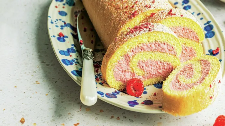 Biskuitrolle mit Himbeeren Zutaten für 14 Stücke: • ...