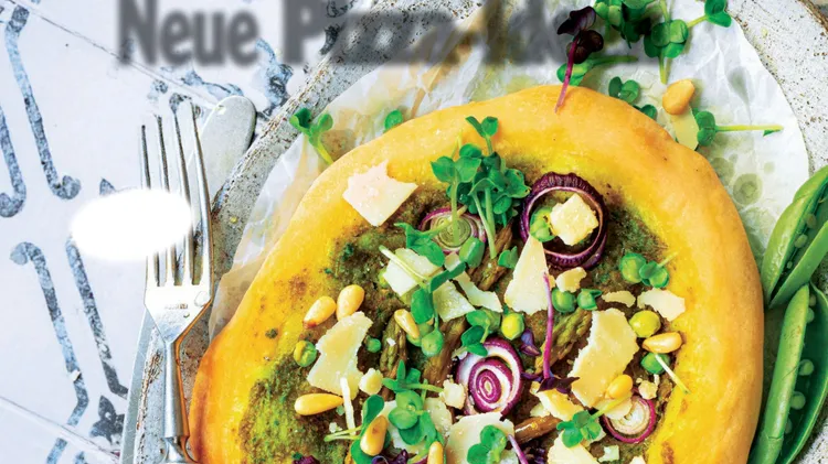 Grüne Pizza mit Erbsen und Spargel Aromatisch mit ...