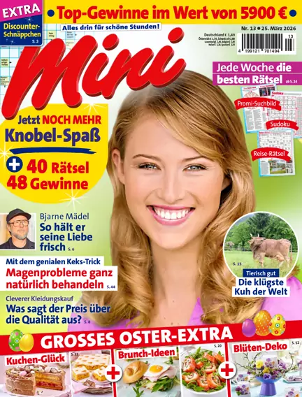 Mit der Mini bei Readly haben Sie immer Maxi-Möglichkeiten: denn das ePaper kombiniert multimedialen Lesespaß durch viele Zusatz-Funktionen mit interessanten Inhalten. Dazu gehören Rätsel und viele Gewinnspiele mit Traumreisen, fesselnden Berichten und kompetenter Lebensberatung. Außerdem können Sie sich auf wechselnde Mini-Preisaktionen mit namhaften Herstellern oder Reise-Veranstaltern mit bis zu 50% Preisnachlass freuen. Für alle Frauen, die einen idealen Mix aus Rätselspaß, Unterhaltung und Information wollen..