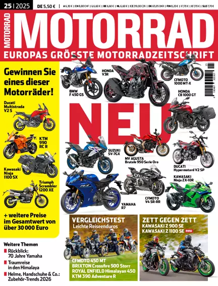 Europas größte Motorradzeitschrift. MOTORRAD ist die älteste und größte Medienmarke Europas rund um das motorisierte Zweirad. In regelmäßigen Tests werden Motorräder und Zubehör bis ins Detail durchleuchtet und bewertet. Service-Tipps und Reiseberichte ergänzen die redaktionelle Vielfalt.