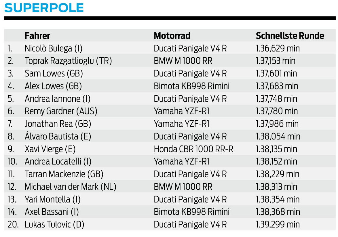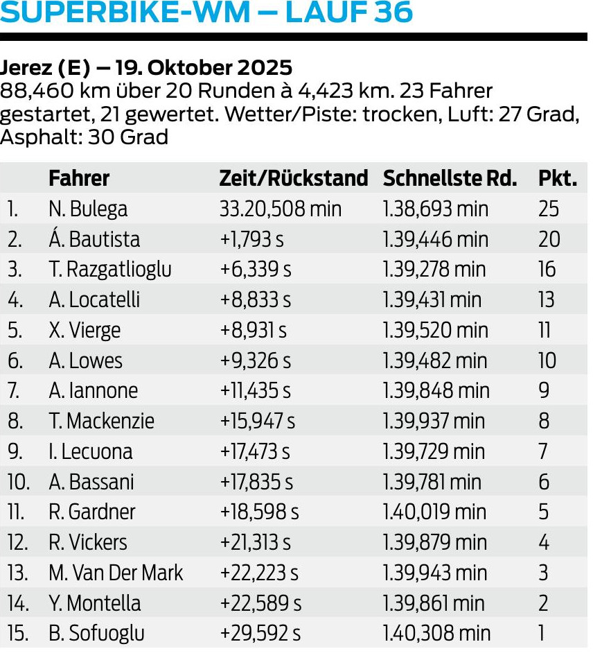 Die Siegesserie von Toprak Razgatlioglu ging in Aragón zu Ende, bevor sie einen neuen Rekordstand erreicht hätte. Der BMW-Pilot teilte sich die Siege mit Nicolò Bulega, der aber aus eigener Kraft nicht mehr Weltmeister werden kann.