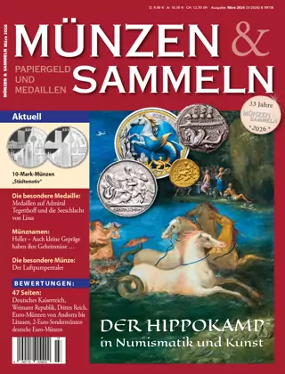 Aktuelle Bewertungstabellen, Nachrichten und Beiträge zur Münzgeschichte. Hinweise auf Veranstaltungen, Börsen und Ausstellungen. Tipps und Ratschläge für Ihre Münzsammlung. Kostenlose Kleinanzeigen für Sammler. Münzneuheiten aus aller Welt, Buchvorstellungen, Auktionsvorschauen und vieles mehr. Dazu jeweils die Seiten für den Papiergeldsammler "Der Geldscheinsammler" mit interessanten Beiträgen über Banknoten und Notgeld aus Deutschland und aller Welt sowie aktuellen Informationen zur Notaphilie. Aktuelles: Das 10-Euro-Stück 2026. „Retungsdienste”. ★ Altdeutschland: Kleinmünzen von Einbeck. Schleswig-Holstein zur Zeit der Erhebung 1848–1851 ★ Ausland: Ein Deutscher als König von Korsika. Die „Muhlenberg-Legende”. Weltmünzenatlas: Philippinen. ★ Medaillen auf Toleranzedikte. Medaillen zur Seligsprechung von Missionsschwestern ★ Porträt: Sigmund Freud ★ Papiergeld: Separatistenausgaben in der Rheinprovinz. Reiseschecks in der DDR. ★ Bewertungen: Deutsche Münzen 1871–1945, Euro-Münzen von Andorra bis Litauen, 2-Euro-Münzen.