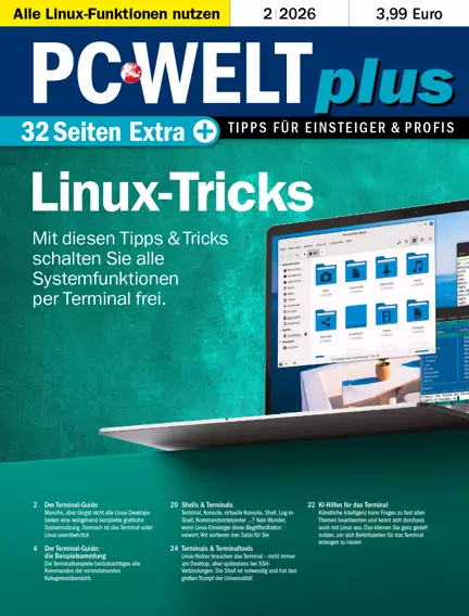 PC-WELT ist das moderne Technikmagazin für fortgeschrittene und professionelle Computer-Anwender. In den Ausgaben von PC-WELT PLUS widmet sich die Redaktion jeweils ausführlich auf 30 Seiten einem speziellen Thema aus der Technik-Welt, beleuchtet es von allen Seiten und liefert wertvolle Tipps sowohl für Einsteiger als auch Profis. Jüngste Beispiele für PC-WELT PLUS Schwerpunkte: WLAN-Tuning, WhatsApp, Windows, Fritzbox und Sicherheit. PC-WELT PLUS erscheint monatlich, i.d.R. am ersten Freitag eines Monats.