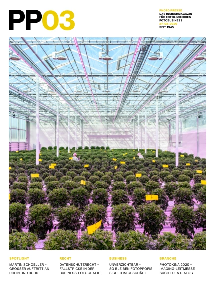 SPOTLIGHT – Martin Schoeller - Großer Auftritt an Rhein und Ruhr | RECHT – Datenschutzrecht - Fallstricke in der Business-Fotografie | BUSINESS – Unverzichtbar - So bleiben Fotoprofis sicher im Geschäft | BRANCHE – Photokina 2020 - Imaging-Leitmesse sucht den Dialog