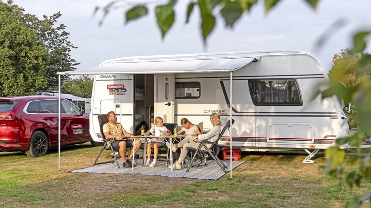 Vier Teams probieren in Dänemark VIER CAMPINGFAHRZEUGE UND ZWEI ZUGWAGEN aus. Wie schneiden Dethleffs, LMC, Mazda CX-60 und CX-80 sowie Etrusco und Bürstner beim Praxistest ab?