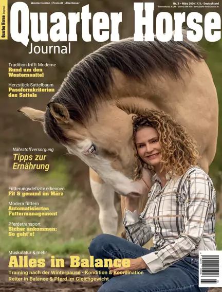 The American Quarter Horse – Alles in Balance: Training nach der Winterpause • Kondition & Koordination / Reiter in Balance & Pferd im Gleichgewicht / Pferdetransport: So geht‘s! Mensch & Tier sicher unterwegs / Modern füttern: Automatisiertes Futtermanagement / Rund um den Westernsattel: Zwischen Tradition & Hightech / Herzstück Sattelbaum: Passformkriterien eines Sattels. Dies und mehr in dieser Ausgabe. Viel Spaß beim Lesen!