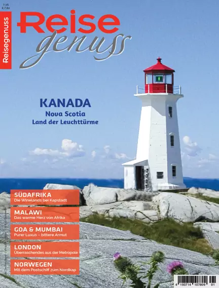 Reisegenuss ist das Premium-Reisemagazin, das in hochwertigen und umfassenden Reportagen die schönsten Reiseziele der Welt vorstellt. In dieser Ausgabe: KANADA: Nova Scotia, Land der Leuchttürme / MALAWI: Das warme Herz von Afrika / SÜDAFRIKA: Winelands bei Kapstadt / GOA & MUMBAI: Purer Luxus - bittere Armut / NORWEGEN: Mit dem Postschiff zum Nordkap / LONDON: Überraschendes aus der Metropole / und mehr...