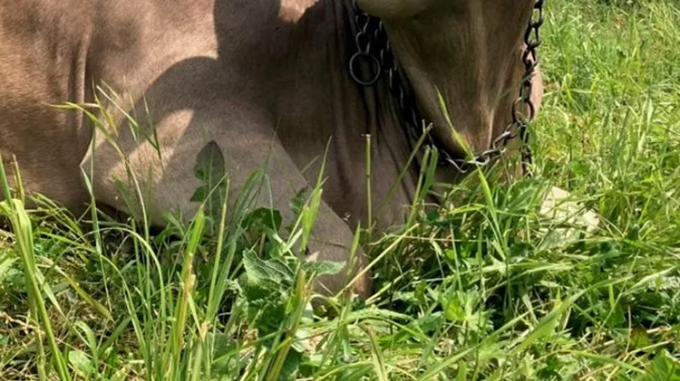 Kuh Veronika benutzt einen Schrubber als Werkzeug