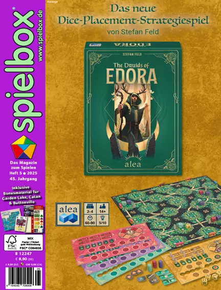 Beilagen in print: - Sonderkarten "Leon the Copycat" für Die glorreichen Gilden von Buttonville (Ravensburger) - Extraplättchen für Garden Lake (Albi) - "Ein Herz für den Räuber" für Catan (Kosmos) In Heft 5/2025 stellen wir das neue Spiel von Stefan Feld vor, das einmal mehr durch clevere Mechanismen und thematische Tiefe überzeugt – ein Muss für Vielspieler! Im zweiten Teil unseres Interviews sprechen Harald Schrapers und Maren Hoffmann über ihre Arbeit in der Jury "Spiel des Jahres": Wie läuft die Entscheidungsfindung ab, welche Kriterien sind entscheidend, und wie verändert sich die Spieleszene? Außerdem werfen wir einen Blick in den hohen Norden: In Island entsteht ein ungewöhnliches Spielecafé, das nicht nur Spielefreunde anzieht, sondern auch einen Ort der Begegnung für Jung und Alt schafft. Falls ihr nicht nach Essen kommen können, haben wir in Heft 5/2025 viel Lesestoff vorbereitet: ein Porträt von Hisahi Hayashi (Autor von Bomb Busters), ein Interview mit Frank Jäger bei Ludo Fact über die Produktion von Brettspielen, ein Besuch beim evtl. größten Spieleladen der USA in Rochester. Und natürlich haben wir wieder viele neue Spiele für euch ausführlich getestet wie z.B. Waldmeister (das neue Spiel von Stefan Feld), Artengarten, Duell um Cardia, Voyage, Voyage, Saltfjord, Everdell Duo und viele andere mehr.