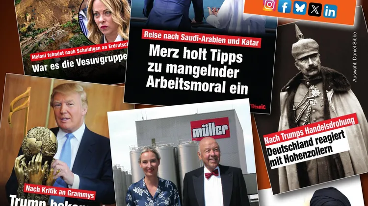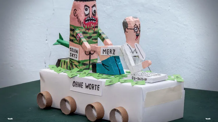 Heft 557 / 47. Jahrgang Pflichtblatt für Terrorsprachmodelle Titel: Leo Riegel 5 – Leo Riegel: Startcartoon 6 – Raddatz-Fanclub: Briefe an die Leser 13 – Maschuw/Witt: TeilZEIT Verbrechen 18 – Stefan Gärtner: Hart und schmutzig 20 – Katz und Goldt: Dunkle Fantasien 22 – Patrick Volknant: Cheers! 25 – Michael Ziegelwagner: Natur am Wort 26 – Riegel: Das Künstlerdorf 29 – Daniel Sibbe: Zaunlyrik 30 – Brinkmann/Riegel/Sibbe: Hoch auf des Putins Wagen 32 – Paul Amsel: Geschenkt ist noch zu teuer 35 – titanic-magazin.de: Fundgrube Internet 36 – [Autorenzeile geschwärzt]: Folgen Sie den Epstein-Pfeilen 38 – Lindsey Vonn: Vom Fachmann für Kenner 41 – Gaitzsch/Sibbe: Blickpunkt Baden-Württemberg 42 – Hans Mentz: Humorkritik 44 – Egner: Betont volkstümlicher Witz 46 – Torsten Gaitzsch: Heim ins Tierreich 48 – Rürup: DB-Sicherheit 2.0 49 – Gunnar Homann: Schwer zu verkraften 50 – Hurzlmeier: Dr. Hu Exploration Lab 52 – Oliver Nagel: Humorkritik spezial (Teil 2) 56 – H&B, Hurzlmeier, Rattelschneck: Hier lacht der Betrachter 58 – Fabian Lichter: Letzte Worte Umschlag, S. 59: Welträumchen von Renke Brandt