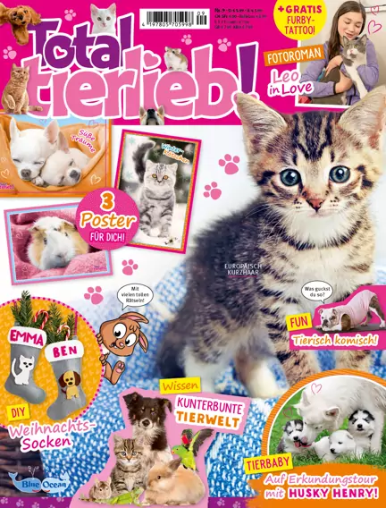 Total tierlieb!, das süße Tiermagazin für Kinder, führt auf 36 liebevoll gestalteten Seiten in die Welt der großen und kleinen Tiere ein. Die Leserinnen und Leser erhalten interessante und witzige Informationen über ihre geliebten Freunde: Es geht um ungewöhnliche Tierfreundschaften, süße Tierbabys und wahre Geschichten aus dem Reich der Tiere. Hilfreiche Tipps für den Umgang mit Tieren, Spielideen für die Haustiere und Bastelseiten runden das Magazin ab.