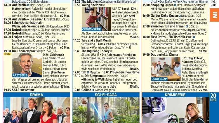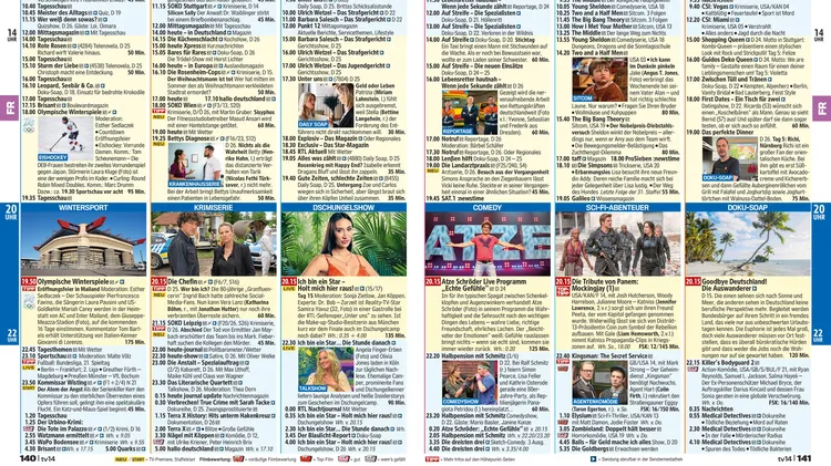 tv14 ist das TV-Magazin, das die Themenvielfalt einer Wochenzeitschrift mit der Übersichtlichkeit eines zweiwöchigen Fernsehprogramms verbindet.
