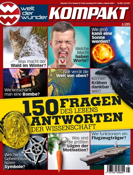 Sie wollen fesselnden Lesespaß, beeindruckende Wissenschaften und Antworten auf die wirklich wichtigen Fragen im Leben? Dann lesen Sie das Sonderheft welt der wunder KOMPAKT und Sie erhalten alle zwei Monate Antworten auf 100 spannende Wissensfragen aus den fünf Rubriken „Fragen der Zeit“, „Fragen der Bewegung“, „Fragen des Lebens“, „Fragen der Materie“ und „Fragen der Phänomene“. Das Wissensmagazin ist DAS Magazin für Fans der populären Wissenschaft. Es beleuchtet die 100 wichtigsten Fragen des alltäglichen Lebens wissenschaftlich und bietet nicht nur fundierte, sondern auch unterhaltsame Antworten. Lassen Sie sich von spannenden Berichten, Reportagen und Infos aus den Bereichen Technik, Natur, Geschichte, Medizin und Forschung mitreißen und tauchen Sie ein in die Welt der Wunder!