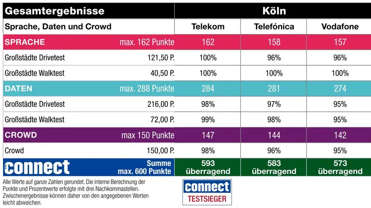In der Domstadt hat auch in diesem Jahr die Telekom insgesamt die Nase vorn. Doch dahinter setzt sich O2/Telefónica mit Abstand vor Vodafone.