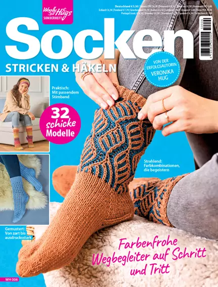 Erfolgsautorin Veronika Hug zeigt die schönsten Sockenmodelle zum Stricken & Häkeln der letzten Jahre aus den Woolly-Hugs-Zeitschriften in diesem Sonderheft. Auch wenn die kalte Jahreszeit noch nicht in vollem Gange ist, wird doch langsam schon wieder Zeit, um sich ans Nadeln zu wagen. Was gibt es Schöneres, als im Herbst und Winter gemütlich mit kuscheligen Socken, einem heißen Tee und einer guten Lektüre die Tage zu verbringen? Der Griff zu dieser Zeitschrift kommt also genau richtig! Ob gestrickt oder gehäkelt, kurz oder lang, uni oder geringelt - hier findet sich alles, was das Herz höherschlagen lässt. Wir haben unsere ganze Garnvielfalt im Repertoire und kombinieren diese mit ausdrucksstarken Mustern, um eure Füße bestens in Szene zu setzen. Es mangelt auch ganz bestimmt nicht an Farben, denn wir zeigen hier das ganze Farbspektrum, kombiniert mit Jacquardmustern, Patenmustern, Grannys zum Häkeln und Reliefmustern, die natürlich auch nicht fehlen dürfen. Dazu gibt es passende Accessoires, einen kleinen Buchtipp zu Frau Hugs neuestem Werk und viele hilfreiche Infos zu den Woolly Hugs-Garnqualitäten. Viel Freude beim Stöbern und Auswählen unserer 32 Modellideen und kommt vor allem warm und schick eingehüllt durch die anstehende Saison.